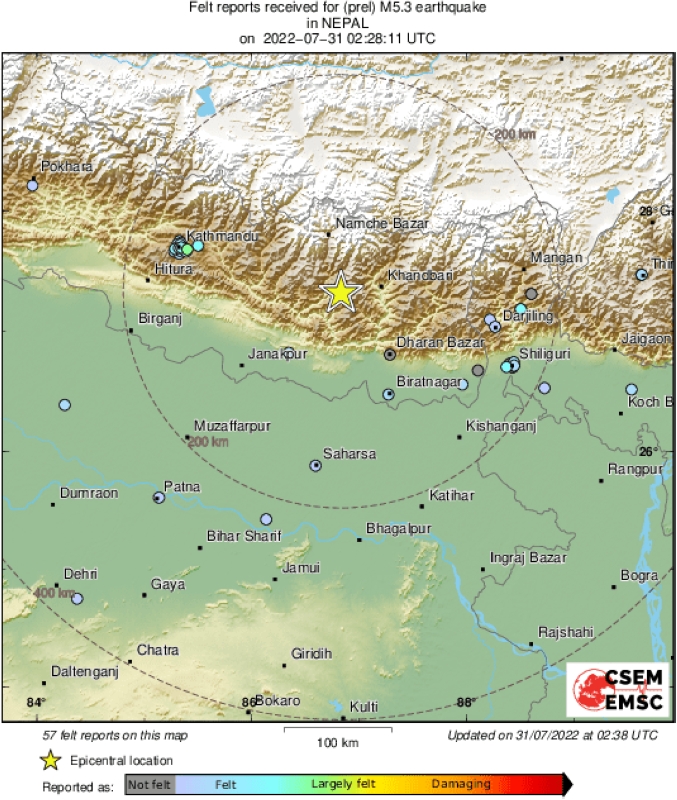 यूरो-मेडिटेरेनियन सिस्मोलोजिकल सेन्टरका अनुसार १० किलोमिटर गहिराइमा रहेको यो भूकम्प नेपालको धरानबाट ६५ किलोमिटर डब्लुएनडब्ल्यू भोजपुरदेखि २६ किलोमिटरसम्म परेको थियो।अन्तर्राष्ट्रिय भूकम्प मापन केन्द्रका अनुसार करिब २९ मिनेटमा ३०० किलोमिटरसम्म धक्का महसुस गरिएको थियो। नेपाल र छिमेकी छिमेकी भारतमा लाखौँ मानिस छन् ।यस साउन महिनामा (असार साउन मसान्तमा) थप दुईवटा भूकम्प गएका छन् । हालैको सिन्धुपाल्चोकमा ४ दशमलव ७ एमएल रिडिङ भएको र बाजुरामा ४ दशमलव १ मापन गरिएको छ ।भूकम्पबाट अहिलेसम्म कुनै क्षति वा क्षतिको विवरण आएको छैन ।